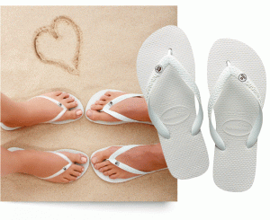 Vor etwa 10 Jahren beschlossen zwei berühmte brasilianische TV-Moderatoren, allen ihren Hochzeitsgästen Havaianas Flip Flops zu schenken. Seitdem sind in Brasilien Havaianas auf allen Tanzflächen von Hochzeitsfeiern zu finden! Und inzwischen haben die 1962 erfundenen brasilianischen Flip Flops aus Gummi mit zwei Modellen, die extra für den großen Tag geschaffen wurden, auch die Tanzflächen der Hochzeiten in Europa erobert.