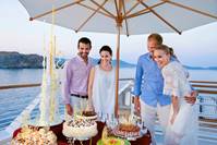 Für dieses einzigartige Erlebnis wählt man aus verschiedenen Ceremony-Packages. Bei der „Sunrise Ceremony“ werden Paare vom Kapitän höchstpersönlich am frühen Morgen getraut. Die Zeremonie selbst wird direkt am Bug der Yacht abgehalten, sodass im Hintergrund stets der romantische Sonnenaufgang betrachtet werden kann. Absolut Instagram-tauglich! Im Anschluss erfolgt ein Champagnerfrühstück mit Blick auf das Meer. Die „Sunset Ceremony“ hingegen ermöglicht eine Trauung an Deck mit Sonnenuntergang als Kulisse. Danach folgt ein Canapés & Champagner-Empfang, um auf die Eheschließung zusammen mit dem Kapitän an zu stoßen.