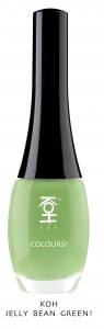 Die unübertreffliche Modefarbe des Sommers 2013 ist Grün. Von Smaragdgrün zu Apfelgrün … mit KOH JELLY BEAN GREEN! kann man getrost am Strand entlang stolzieren: frisch und voller Energie, in einem knalligen, leuchtend grünen Bikini, mit großen grünen Sonnenschutzgläsern im Stil der Sechziger und apfelgrün lackierten Nägeln.