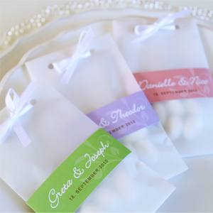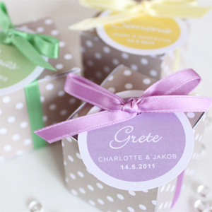 Gastgeschenke: Auf alle Fälle ein Hinkucker sind die personalisierten Gastgeschenke. Mandeln, Pralinen und andere Köstlichkeiten einfach süß verpackt. Wer sich die Tischkarten sparen will, kann genauso auf die schönen Schachteln zurück greifen.