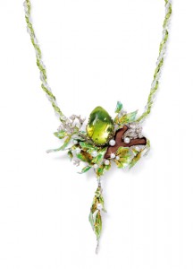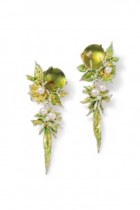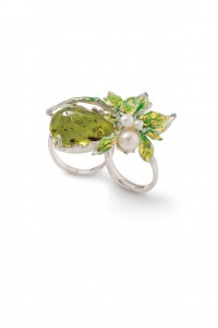 Die “Golden Green Amber” Kollektion nutzt Sterlingsilber, Feueremaille, Süsswasserperlen und grünen Bernstein. We want!
